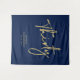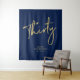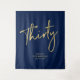 Esta moderna tapicería es perfecta para una fiesta de cumpleaños 30 chic de azul marino y dorado. Tus invitados disfrutarán tomando una foto con este fondo de fiesta sofisticado y recordarán tu día especial. El diseño cuenta con un "Treinta" de pincel dorado con texto personalizado. Puedes personalizar el nombre, evento y fecha en la parte inferior de la tapicería. ¡Gracias!