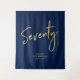 Esta moderna tapicería es perfecta para una fiesta de cumpleaños 70 chic azul marino y dorado. Tus invitados disfrutarán tomando una foto con este sofisticado fondo de fiesta y recordarán tu día especial. El diseño presenta un "Setenta" en pincel dorado con texto personalizado. Puedes personalizar el nombre, evento y fecha en la parte inferior de la tapicería. ¡Gracias!