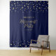 Esta moderna tapicería es perfecta para una elegante fiesta de jubilación de color azul marino y dorado. Tus invitados disfrutarán tomándose una foto con este sofisticado fondo de fiesta y recordarán tu día especial. El diseño cuenta con tipografía dorada "Fiesta de jubilación" y un fondo de confeti en forma de hexágono. Puedes personalizar el nombre y la fecha del evento. Las invitaciones y suministros de fiesta a juego están disponibles en mi tienda BaraBomDesign. ¡Gracias!