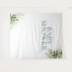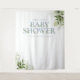 Un elegante fondo de cabina de fotos de baby shower con tipografía azul polvorienta y hermoso follaje de vegetación botánica. Diseñado por Thisisnotme©