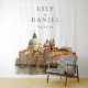 Este elegante telón de fondo de cabina de fotos de boda con el horizonte de Venecia en acuarela se puede personalizar con su información en tipografía moderna. Diseñado por Thisisnotme