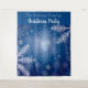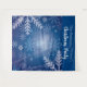 Una tapicería invernal para una divertida temporada navideña y fiestas de Navidad, cenas. Un fondo azul con grandes copos de nieve blancos, cristales. Personalice y agregue el nombre de su familia. El texto: Fiesta de Navidad está escrito en blanco con un estilo de letra manuscrita moderna. Se puede utilizar como letrero de bienvenida, decoración de pared para fiestas o como fondo para cabina de fotos.