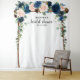 Fondo de foto de ducha de novia floral azul marino con un elegante ramo de flores azules, azul real, blancas, rosas y hojas de eucalipto verde salvia. Por favor, contácteme para cualquier ayuda en personalización o si necesita algún otro producto con este diseño.