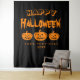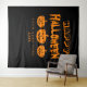 Fondo de foto de fiesta de Halloween espeluznante de naranja negra. Ideal para hacer fotos de grupo profesionales y selfies con familiares, amigos o invitados. Tapiz decorativo personalizado disponible en tamaños pequeños y grandes extra grandes. Decoración personalizada para reunión divertida, reunión, celebración, etc. Calabaza tallada jack o linterna y texto en negrita.