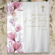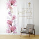 Este elegante fondo de foto de primer comunión y bautizo floral transparente de color rosa sucio puede personalizarse con su información en tipografía chic. Diseñado por Thisisnotme©