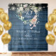 Con una delicada guirnalda de rosas de acuarela y luces de cuerda sobre un fondo de paneles de madera azul, este fondo de fotomatón de bodas de oro de 50 años de estilo rústico agregará diversión y recuerdos a su evento de celebración. Diseñado por Thisisnotme©