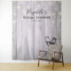 Plantillas de fondo para cabina de fotos de despedida de soltera / boda - Letra elegante, copas de champán vintage y luces de cadena sobre fondo de madera rústica.