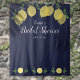 Con limones y follaje sobre un fondo azul marino, este fondo de foto botánico y elegante para fiesta de compromiso puede ser personalizado con la información de su evento especial. Diseñado por Thisisnotme©