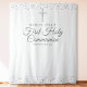 Telón de fondo de fotomatón para Primera Comunión con polvo de estrellas plateado que puedes personalizar con tu información especial en texto plateado elegante. Diseñado por Thisisnotme©
