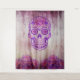 Decoración colgante de pared del Día de los Muertos para tu fiesta de Halloween o celebración del Día de los Muertos. Calavera morada con rosas, el diseño de fondo es un patrón de la cara de la calavera del día de los muertos.