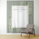 Con delicadas hojas de vegetación en acuarela sobre un fondo verde salvia, este elegante fondo de fotomatón para baby shower de novia se puede personalizar con el nombre de la novia y la fecha especial. Diseñado por Thisisnotme©