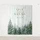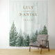 Este fondo de cabina de fotos de boda de bosque de pino con estilo acuarela elegante y rústico se puede personalizar con su información en tipografía moderna. Diseñado por Thisisnotme©