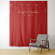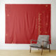 Tapiz fondo de fotos de boda con diseño de flores de cerezo rojas y doradas.