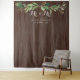 Un hermoso fondo de fotos o accesorio para cabina de fotos para tu boda, con un arreglo de acuarela de ramas de eucalipto verdes sobre un fondo de madera oscura pintada, "Sr. & Sra." en letra cursiva blanca, personalizado con tus nombres y fecha de boda.