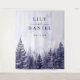 Este telón de fondo de cabina de fotos de boda del bosque de pinos púrpura elegante y rústico puede ser personalizado con su información en tipografía moderna. Diseñado por Thisisnotme©