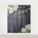 Plantillas de Fondo para Fotomatón de Despedida de Soltera / Celebración de Boda - Elegantes Flores de Hortensia Blancas y Luces de Cadena sobre Fondo de Lino Floral Azul Marino Vintage.