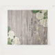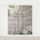 Plantillas de fondo para cabina de fotos de boda / celebración de boda - Elegantes flores de hortensia blancas y luces de cuerda sobre fondo de madera rústica.