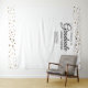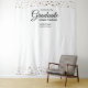 Personaliza esto para el fondo de selfie de graduación de tu promoción. Con impresión de confeti dorado sobre un fondo blanco. Tipografía elegante de estilo script para la palabra "Graduado". Celebra en interiores con este decorado de pared. Utilízalo para la fiesta de celebración de graduación de secundaria, primaria, universidad o instituto.