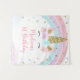 El diseño es muy agradable, con una cara de unicornio con un arcoiris de colores pastel y adornos purpurinas de imitación dorada.
