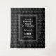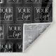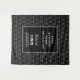 Fondo de tela negro y blanco para tu negocio con tu logo como patrón que cubre todo el fondo. Agrega tu identificador de redes sociales debajo de los iconos blancos de redes sociales. Fondo personalizado para tu negocio con tu logo y redes sociales.