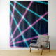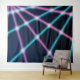 Fondo de foto divertido y genial de tela colgante para una cabina de fotos en una fiesta de los 80 o 90. Cuando las luces láser eran la ola del futuro. Rayos brillantes de neón en rosa caliente y azul teal que se cruzan en un fondo azul marino y negro. Ideal para un divertido proyecto de fotografía retro o artículo de regalo divertido. Ideal para el suministro de un fotógrafo de club nocturno, dj, deejay o fiesta.