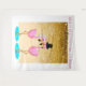 El fondo divertido perfecto para fotos de bodas de destino y playa. Elegante brillo dorado mezclado con diversión de playa. Es tu boda, hazlo a tu manera. Diseños gráficos originales. Personaliza todo el texto. Lindos flamencos rosados con corbata de moño y esmoquin y velo de novia con liga.