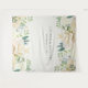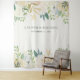 Este impresionante fondo de fotomatón de boda cuenta con flores de acuarela de moda en tonos de marfil, blanco, melocotón y dorado, con hojas verdes.