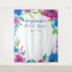 Hermoso y colorido fondo fotográfico para tu ocasión especial, ya sea una fiesta de boda o una celebración de cumpleaños especial. El texto elegante se puede cambiar fácilmente a la redacción que desees. Esta vibrante tapicería de estilo acuarela iluminará tu sala de fiestas.