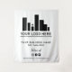 Fondo en blanco y negro para tu negocio con tu gran logotipo y tu texto personalizado. Agrega tu identificador de redes sociales debajo de los iconos de redes sociales en negro.