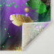 Fondo de mardi gris azul textural con manchas de color violeta, amarillo y verde, adornadas con plumas esponjosas y cuentas brillantes. Fiesta de Mardi gras.