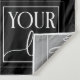 Fondo en blanco y negro para tu negocio con tu logo en un marco alrededor de tu texto personalizado. Agrega tu identificador de redes sociales debajo de los iconos blancos de redes sociales.