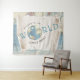 Bandera de baby shower de mapa antiguo con mapa del mundo antiguo y fondo de papel pergamino y globo azul y dorado. Esta gran bandera de baby shower de mapa mundial antiguo se personaliza fácilmente con el texto que elijas, o puedes dejarla tal como está para ponerla en la habitación del bebé.