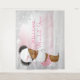 Fondo de banner para baby shower de niña en invierno mágico con adorable bebé vestida con un lindo traje de nieve rosa y peinado afro en un hermoso fondo de nieve de invierno mágico. Este hermoso banner para baby shower de invierno mágico se personaliza fácilmente con el texto que elijas.