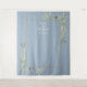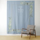 Con delicadas hojas de vegetación en acuarela sobre un fondo azul polvoriento, este elegante fondo botánico para cabina de fotos de boda se puede personalizar con sus nombres y fecha especial. Diseñado por Thisisnotme©