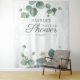 Tapiz de fondo para cabina de fotos de eucalipto para despedida de soltera. Gran decoración de pared para fiestas y pancarta para una moderna y trendy despedida de soltera con tema botánico. Consta de eucalipto verde con fondo de acuarela rosado. Cambie fácilmente los detalles haciendo clic en el botón "Personalizar" de arriba.