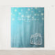 Plantillas de fondo para cabina de fotos de ducha de novia / celebración de boda - Letra elegante y escritura de tarros Mason de pareja vintage y luces de cuerda sobre fondo floral azul claro.