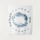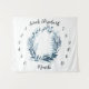 Rodea a tu dulce bebé en una corona de follaje y hojas de acuarela azul con este hermoso fondo para fotos que incluye el nombre del bebé en letra de caligrafía manuscrita, y los meses 1-12 alrededor del perímetro de flores.
