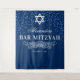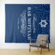 Tapiz personalizado de fondo para fotos de bar mitzvah con un fondo azul elegante, brillo, el símbolo de la estrella de David, el nombre del niño y la fecha.