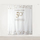 Celebre el 50º aniversario de bodas doradas de su empresa con este letrero de bienvenida que también sirve como fondo para fotomatón de estación de selfies. Un diseño de confeti dorado y blanco para resaltar este hito. Personalice con sus nombres.