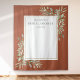 Con delicadas hojas de vegetación en acuarela sobre un fondo de terracota, este elegante fondo para cabina de fotos de despedida de soltera se puede personalizar con el nombre de la novia y la fecha especial. Diseñado por Thisisnotme©