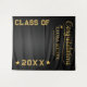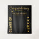 Celebre a su graduado con este elegante fondo de graduación personalizado en negro y dorado. Diseñado como un divertido fondo para fotos, presenta un audaz mensaje de felicitación y detalles personalizados como el nombre del graduado y el año de graduación. ¡Perfecto para capturar recuerdos inolvidables en ese día especial!