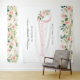 Una gran idea para tu celebración de Quinceañera, este tapiz de fondo para fotos tiene bordes florales femeninos de color rosa y blanco en la parte superior e inferior del diseño. El centro del diseño tiene texto rosa que deletrea "Quinceañera" con un estilo encantador. Personaliza con el nombre de la invitada de honor para una decoración de fiesta personalizada que es perfecta para retratos y selfies con amigos y familiares.