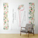 Una gran idea para tu celebración de Quinceañera, esta tapicería de fondo para fotos tiene bordes florales de color rosa pálido femenino y blanco en la parte superior e inferior del diseño. El centro del diseño tiene texto rosa que deletrea "Quinceañera" con un estilo encantador. Personaliza con el nombre de la invitada de honor para una decoración de fiesta personalizada que es perfecta para retratos y selfies con amigos y familiares.