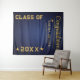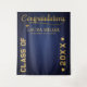 Celebre a su graduado con este elegante fondo personalizado de graduación en azul marino y dorado. Diseñado como un divertido fondo para fotos, presenta un audaz mensaje de Felicitaciones y detalles personalizados como el nombre del graduado y el año de graduación. ¡Perfecto para capturar recuerdos inolvidables en ese día tan especial!