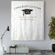¡Fondo de celebración de graduación moderna para oportunidades de foto! Brillo en la parte superior e inferior, serpentinas doradas desde el borde superior, gorra de graduación y letras en negro, plantilla de nombre en dorado. Clase de en letras de brillo dorado con plantilla de año en blanco. Agrega año, nombre y nombre de la escuela.