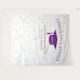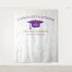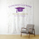 Fondo de celebración de graduación moderna para oportunidades de foto. Brillo en la parte superior e inferior, serpentinas doradas desde el borde superior, gorra de graduación y letras en púrpura, plantilla de nombre en dorado. Clase de en letras de brillo dorado con plantilla de año en blanco. Agrega año, nombre y nombre de la escuela.