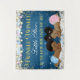 Fondo para baby shower de estrellita brillante con adorable bebé afroamericano niño y niña con lindos trajes rosados y azules en una hermosa nube azul y fondo de estrellas. Este lindo banner de baby shower de estrellita brillante se personaliza fácilmente con el texto de su elección.