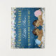 Fondo para baby shower de Twinkle twinkle little star con adorables bebés étnicos niño y niña con lindos trajes rosados y azules en una hermosa nube azul y fondo de estrellas. Este lindo banner de baby shower de Twinkle twinkle little star se personaliza fácilmente con el texto de su elección.
