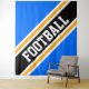 Este diseño deportivo presenta texto atlético de FOOTBALL dentro de una diagonal ancha realzada de rayas de carreras en blanco, negro y amarillo dorado contra bandas anchas de banda exterior azul brillante. El texto de este diseño se puede personalizar.
