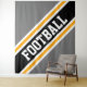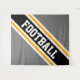 Este diseño deportivo presenta texto atlético de FOOTBALL dentro de una diagonal ancha realzada de rayas de carreras en blanco, negro y amarillo dorado contra bandas externas grises anchas. El texto de este diseño se puede personalizar.